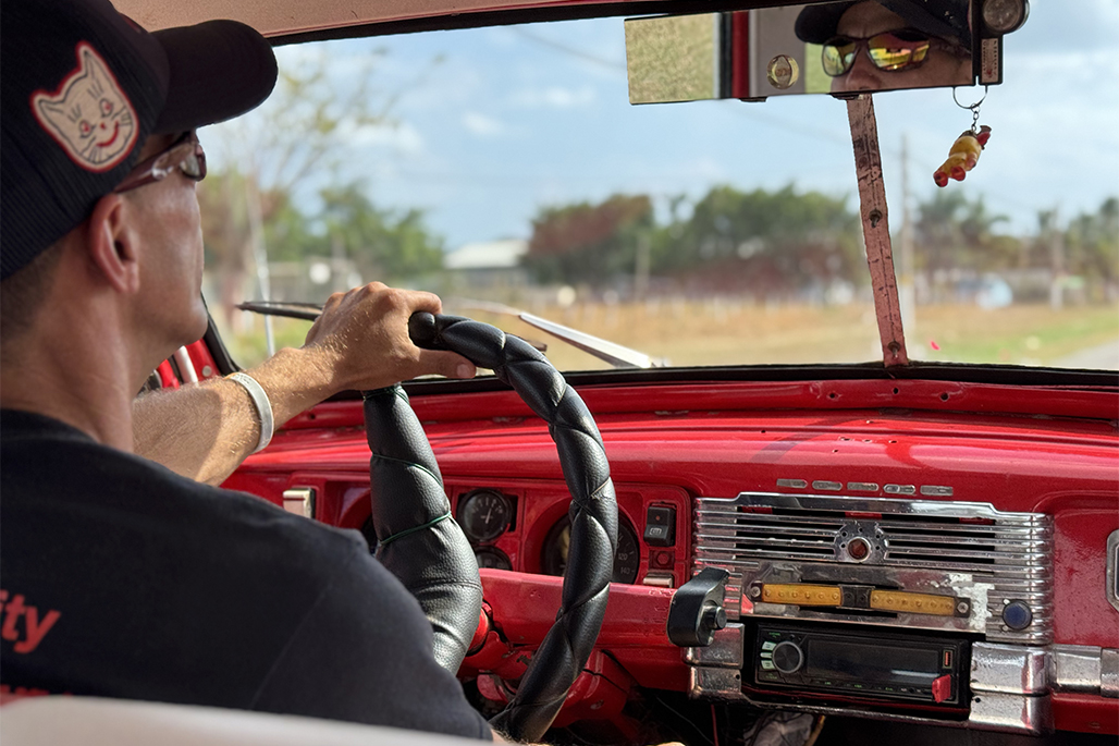 一番手に迎えに来てくれたので、2人でかなりイカしたクラシックカーの助手席に乗り込む。